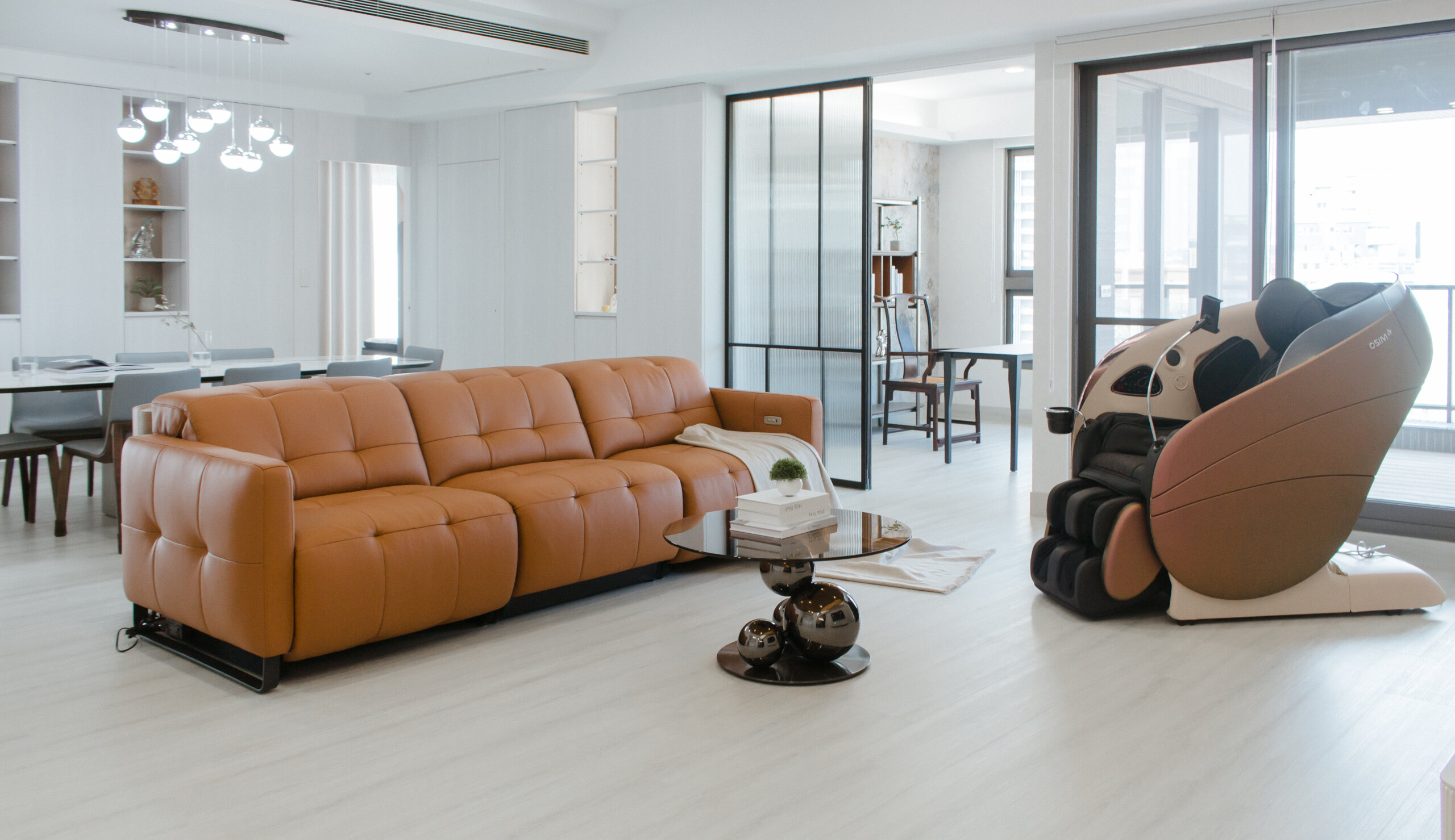 客人喜歡上我們斐洛電動沙發舒適的躺感,在材質上升級成Nappa牛皮,讓沙發質感大大的提升了。