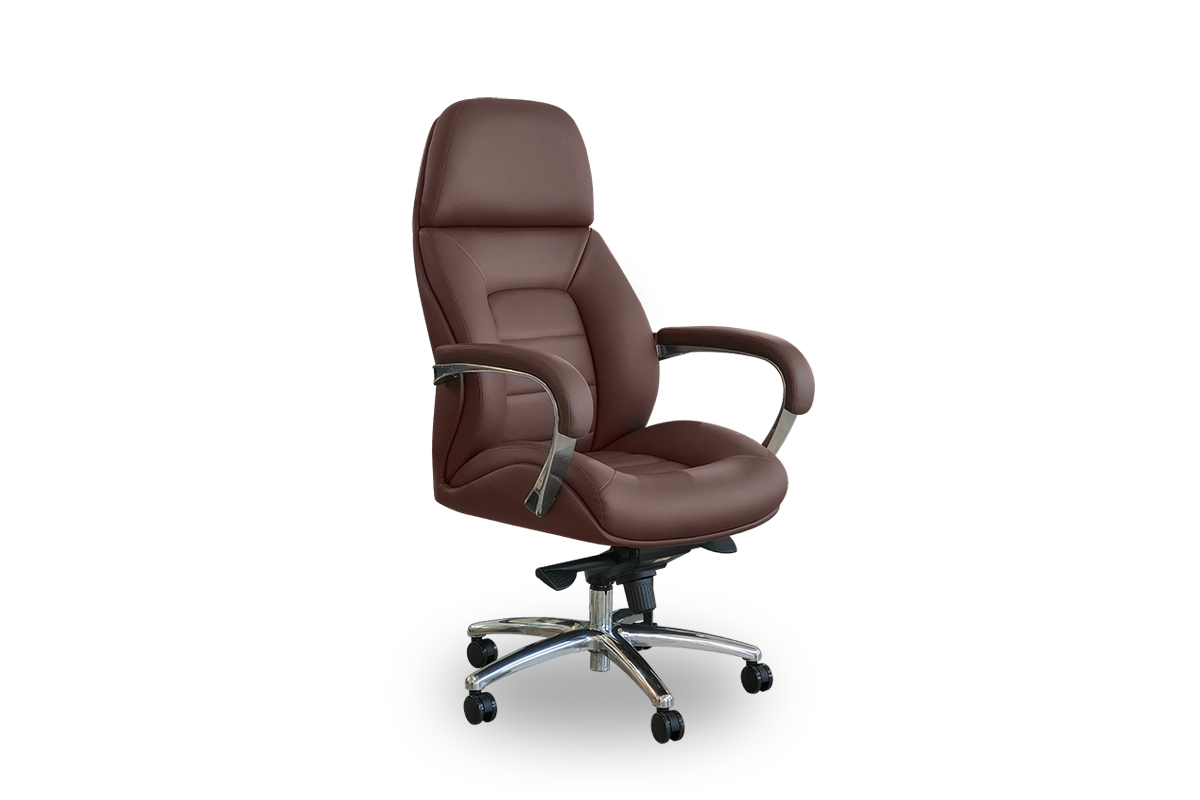 西皮,定型棉座背,鋁合金扶手,豪華底盤鎖定三個角度,拋光鋁合金麵包腳帶60大輪,電鍍三級氣杆