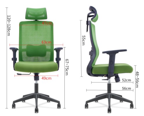灰色塑膠,網布,灰色PP腳,2寸尼龍輪,黑漆氣杆,單手柄鎖定90度底盤,灰色塑膠扶手,海綿坐墊,帶頭枕,帶海綿腰枕