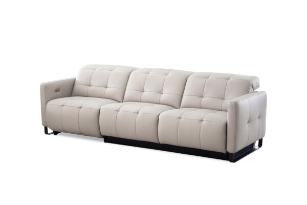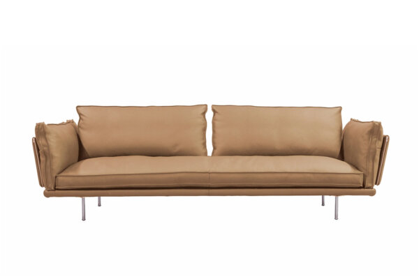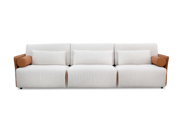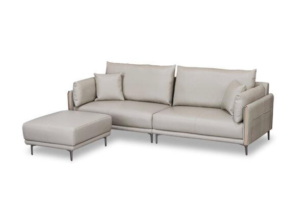 這組是A19401A 亞德曼沙發,由於客人家中的尺寸放不下完整的皮沙發組,但又很喜歡這組皮沙發,於是A+A家具為其訂做了一個三人座沙發,並配合客戶家中比較淡雅的色系,與客戶討論出適合的淺色系去製作。沙發皮種類採用最高級的Nappa皮,並依照客戶喜歡的樣式與坐感進行調整。茶几也按整體適合大小去訂製,讓家中整體尺寸與感受更加和諧。