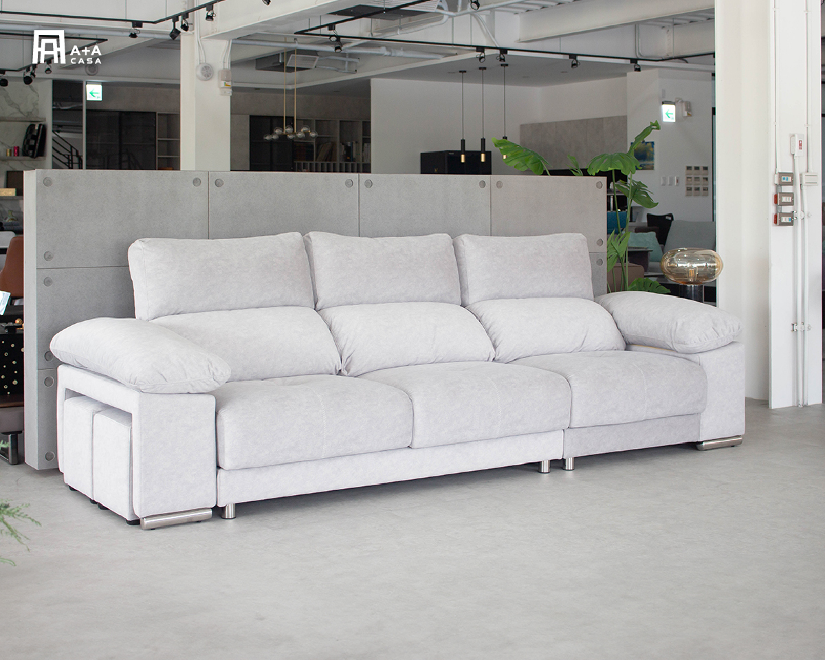 枕頭沙發正如其名,宛如一顆顆枕頭堆砌而成,服貼舒服。沙發坐墊可以延伸,且加上連動式設計,讓腰部與頭枕隨坐墊延伸,更為舒適。